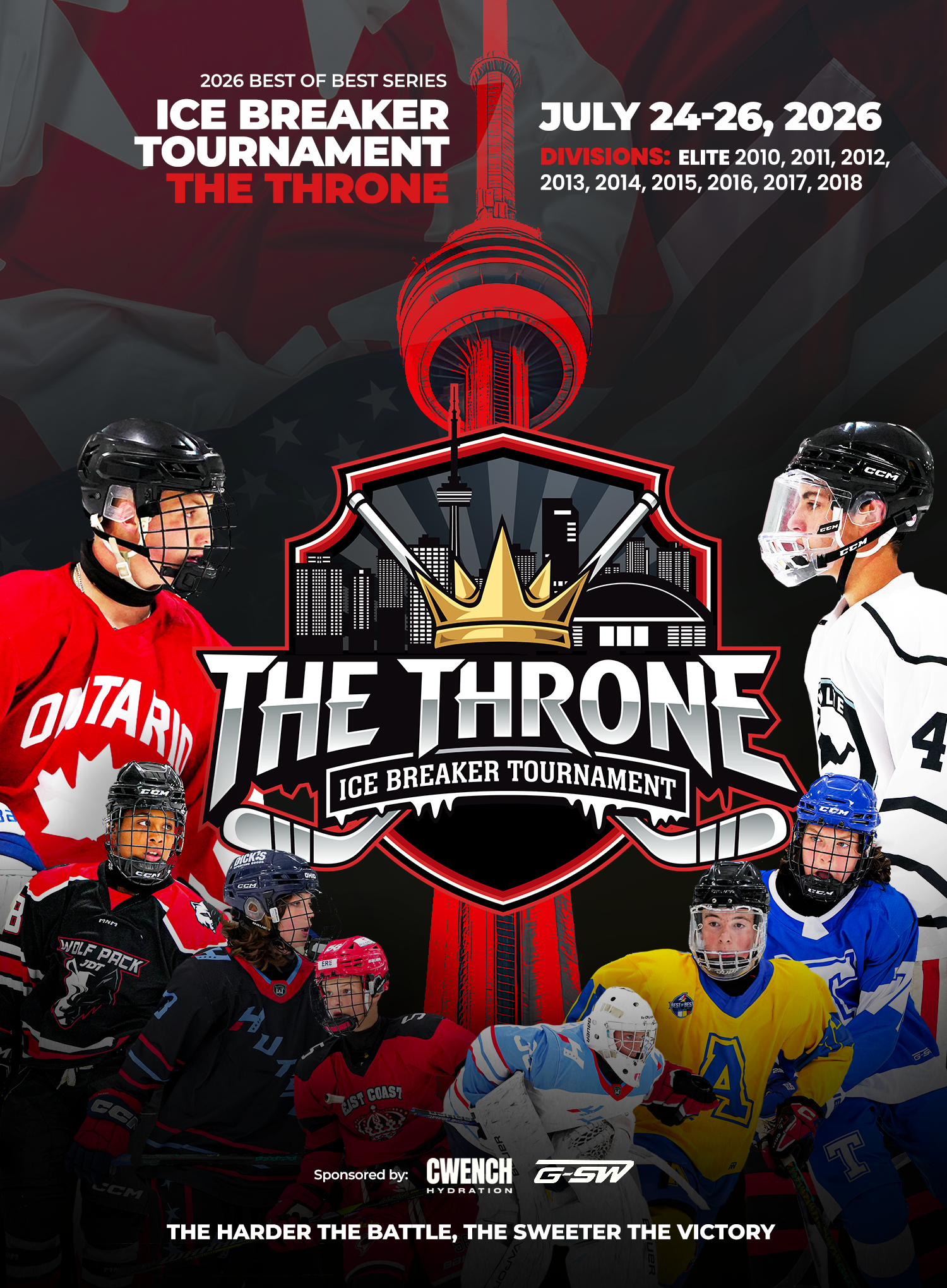 THE THRONE will showcase our four BEST OF BEST SERIES teams and ten ELITE out-of-province teams. This tournament is designed to prepare TEAM EAST / TEAM TORONTO / TEAM WEST & TEAM ALLIANCE for their series that begins in August each and every year. In 2025 the tournament will have the following ELITE divisions 2010 | 2011 | 2012 | 2013 | 2014 which will showcase the BEST players in Ontario. **Please note that the 2010 & 2011 age groups are no longer part of the Best of Best Series but will have an 8 to 14 team hand selected showcase instead**